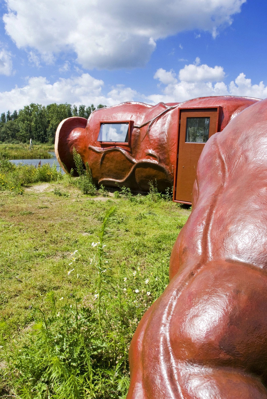 Theo Atlas Obscura, “cha đẻ” của CasAnus là nghệ sĩ người Hà Lan Joep van Lieshout. Khách sạn được làm từ gỗ, bọt PU và phủ lớp sợi thủy tinh gia cố polyester, tạo nên hình dạng và màu sắc giống như một đoạn ruột người.