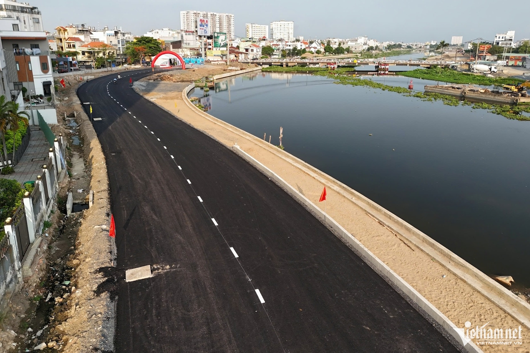 Phía đối diện (bờ trái) 2 đoạn của quận 12 thông xe dài hơn 2,2km gồm đoạn từ cầu Bến Phân về cầu An Lộc và đoạn từ cống Vàm Thuật đến cuối tuyến